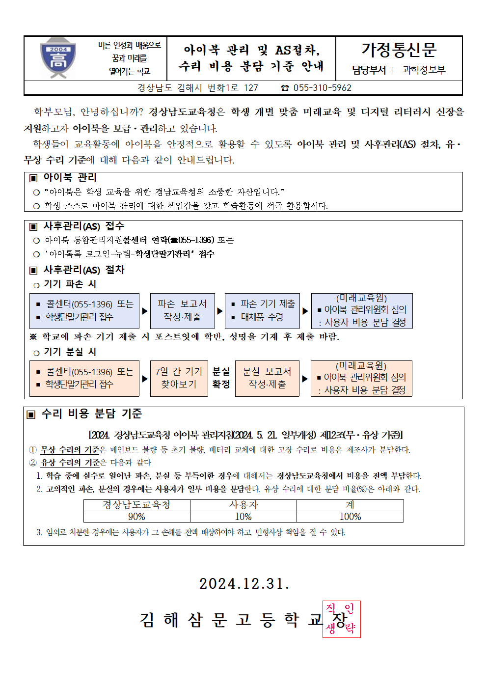 2024. 아이북 관리 및 사후관리 절차, 수리 비용 분담 기준 안내.png